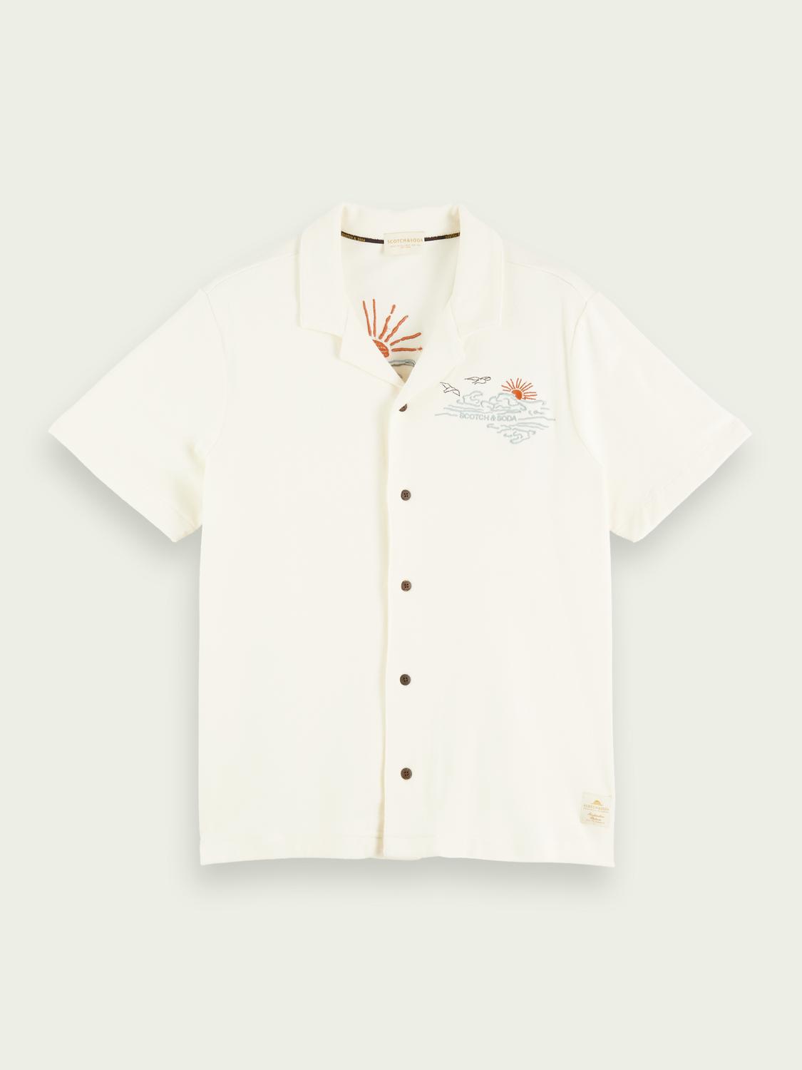 Scotch Soda Cotton Terry Hawaii Shirt With Embroideries In Denim White White For Men Lyst